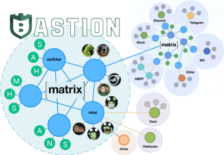 Matrix is an open source project that publishes the Matrix open standard for secure, decentralized, real-time communication. Our Matrix homeserver for the domain bastion.li hosts your Matrix ID (@id:bastion.li) similar to an email address, your account settings and secure end-to-end encryption key backups, stores a copy of your rooms history and connects you to the whole Matrix network including any other bridged networks like IRC, Slack, Discord, Telegram and many more.